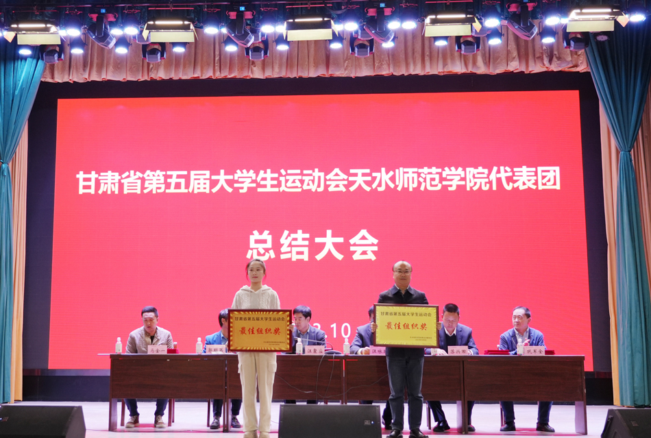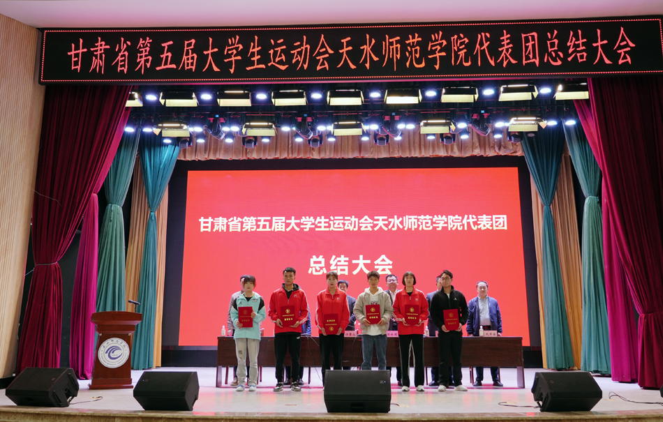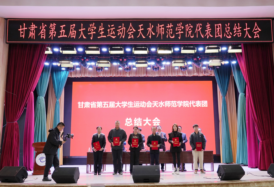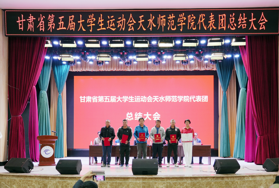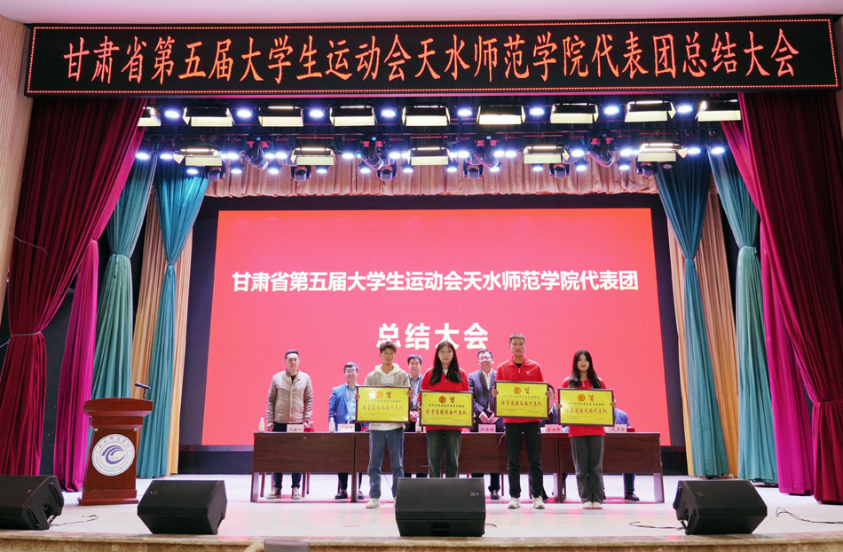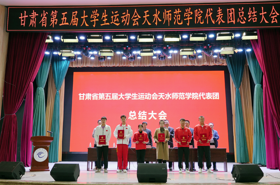 教务处处长郭昭第宣读了《甘肃省教育厅 甘肃省体育局 共青团甘肃省委关于公布甘肃省第五届大学生运动会获奖名单的通知》,德赢winac米兰院长苏兴田宣读了校体委表彰决定。大会为体育道德风尚代表队、学校最佳组织奖、优秀运动员代表、优秀工作者颁发了奖牌和证书。教练员、运动员代表分别作了发言。