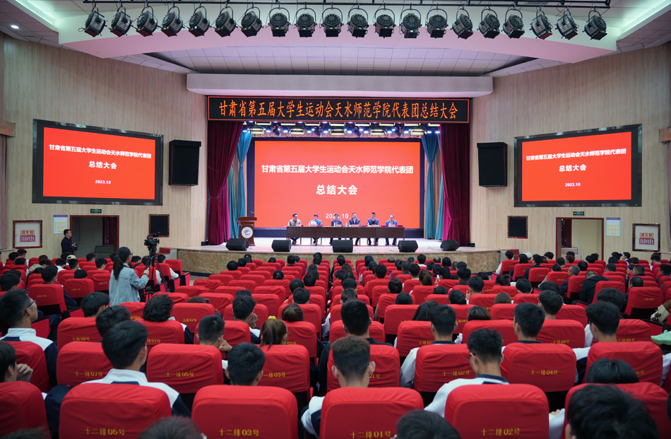 10月13日下午,学校在大礼堂召开甘肃省第五届大学生运动会天水师范学院代表团总结大会。校长汪聚应出席会议并作总结讲话。相关职能部门负责人、各学院书记、教练员、运动员及师生代表参加会议。党委常委、副校长汪咏国主持会议。