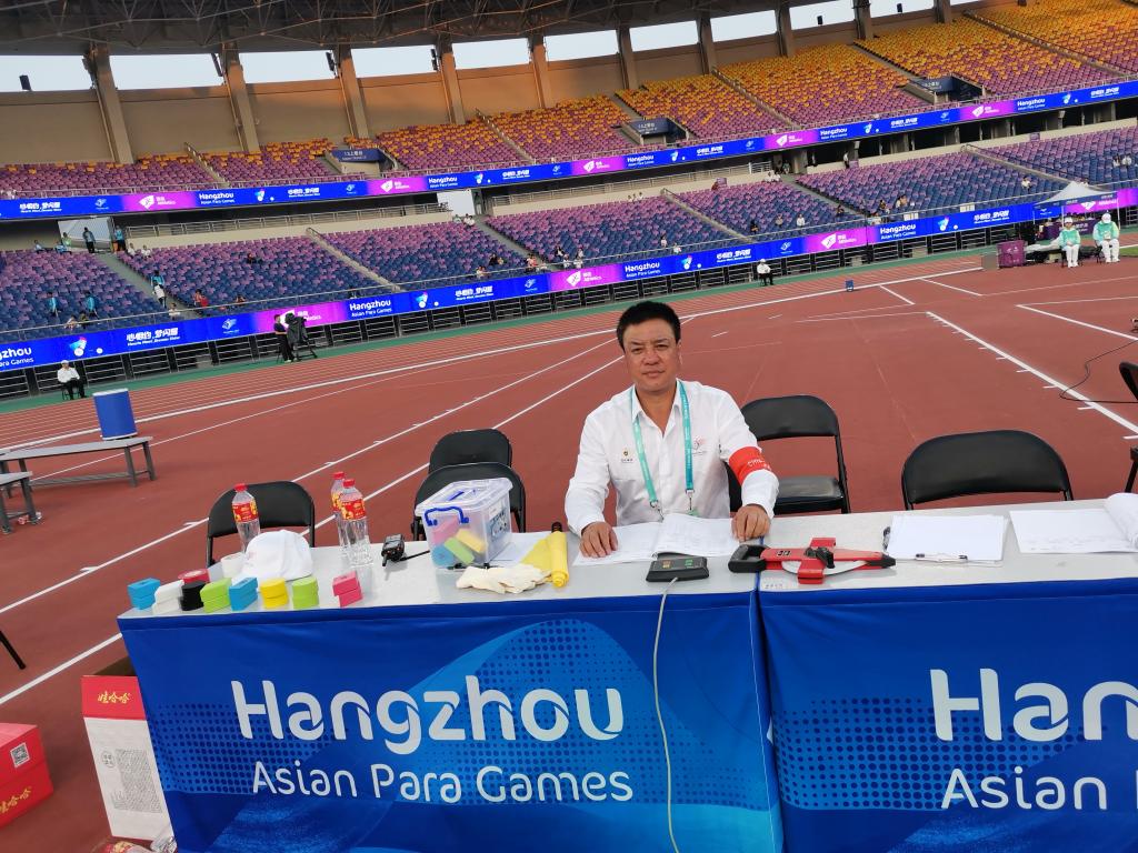 10月22日至28日,第四届亚洲残疾人运动会田径比赛在杭州黄龙奥体中心举行。德赢winac米兰特奥田径国家级裁判王麒麟教授被亚组委选派为田径项目技术官员,并担任田径项目主裁判。