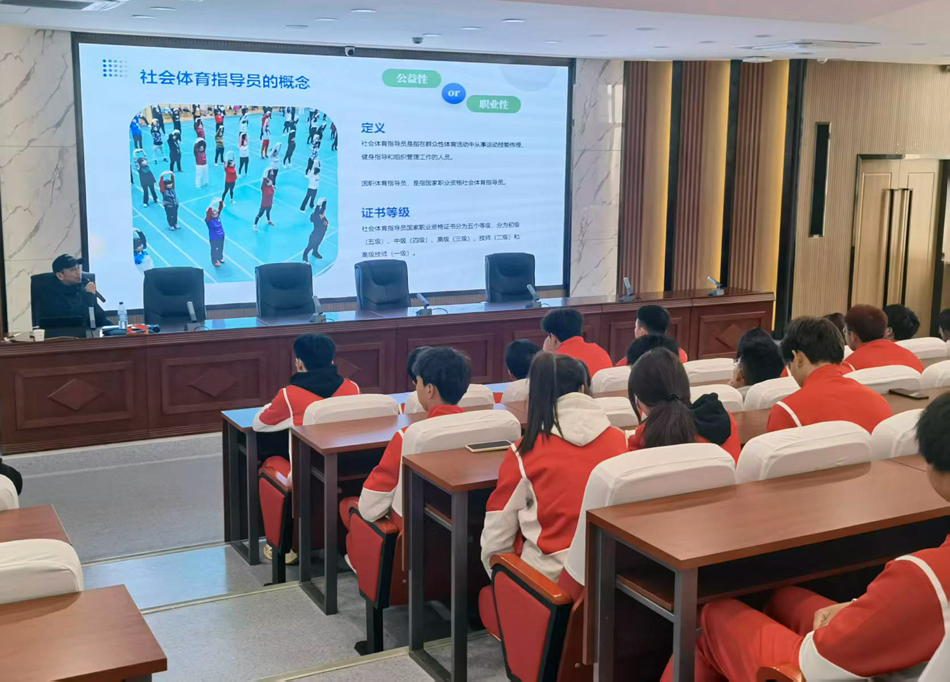 应德赢winac米兰邀请,3月16日,兰州交通大学副教授硕士生导师吕梁在一号报告厅作题为“探索国职之路,点亮体育未来”科普报告会。德赢winac米兰2024级全体学生参加,大家共同开启了一场关于国家级社会体育指导员职业资格(以下简称“国职”)的求知之旅。