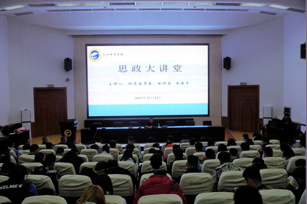 11月14日晚7点半,学校党委常委、副校长安建平在2号报告厅开设思政大讲堂,为德赢winac米兰师生宣讲党的十九届四中全会精神。会议由德赢winac米兰党总支副书记吴建全主持,体育学院辅导员以及学生共计300多人参加。
