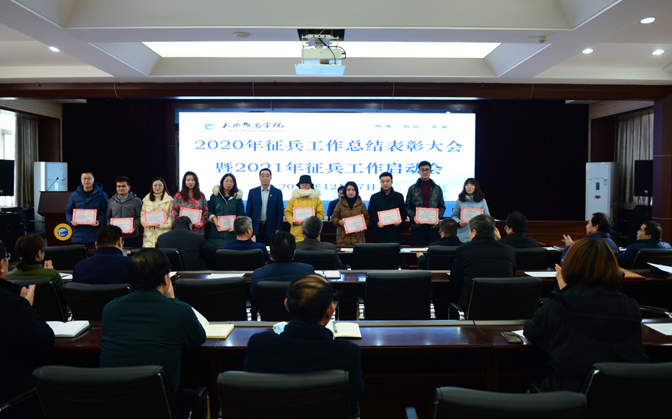 12月17日上午,学校在办公楼605会议室召开2020年征兵工作总结表彰暨2021年征兵工作启动大会。党委书记李正元,党委常委、副校长曹爱明出席会议,党委学工部、武装部负责人,各学院党总支书记、副书记及辅导员参加会议。