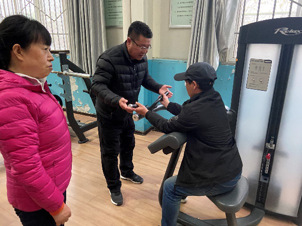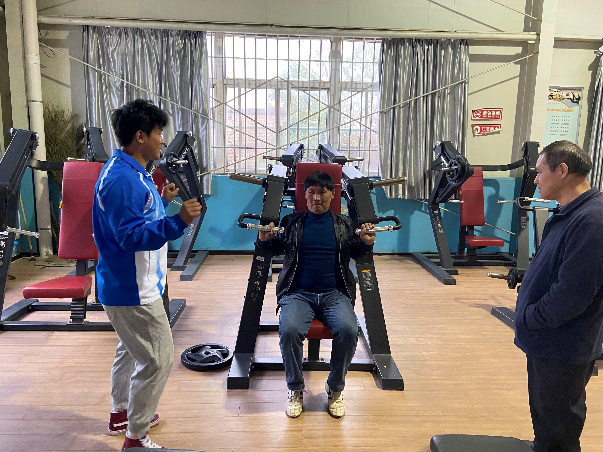 在残疾人体育运动与康复实践授课中:魏玉琴老师携7名学生围绕创编的《残疾人拉力带健身操舞》和《残疾人全身健身操舞》展开教学,重点通过借助拉力带的辅助作用,使残疾人的肩部、颈部、腰部起到良好的运动康复训练;而全身健身操舞则由下肢的34步组成,这对残疾人的全身活动起到了重要作用。陈玮老师选用自主创编的《轮椅健身操舞》,隶属徒手类健身项目,使残疾人在音乐伴奏下,融入多种时尚舞蹈元素为一体的有氧运动,重点对残疾人头、颈、肩、胸及腰等5部位的运动康复练习起到促进作用。段文义教授则通过德赢健身房内残疾人体育运动与康复训练的专业性器械设备,进行悉心的指导和动作演示,这对满足残疾人业余时间内的体育健身、机能恢复、伤残康复训练提供指导与帮助。