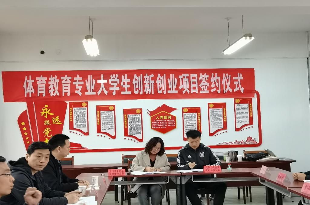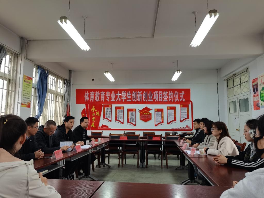 2021年3月25日上午,在学校2号教学楼体育学院会议室,举办了体育学院体育教育专业大学生创新创业项目签约活动。