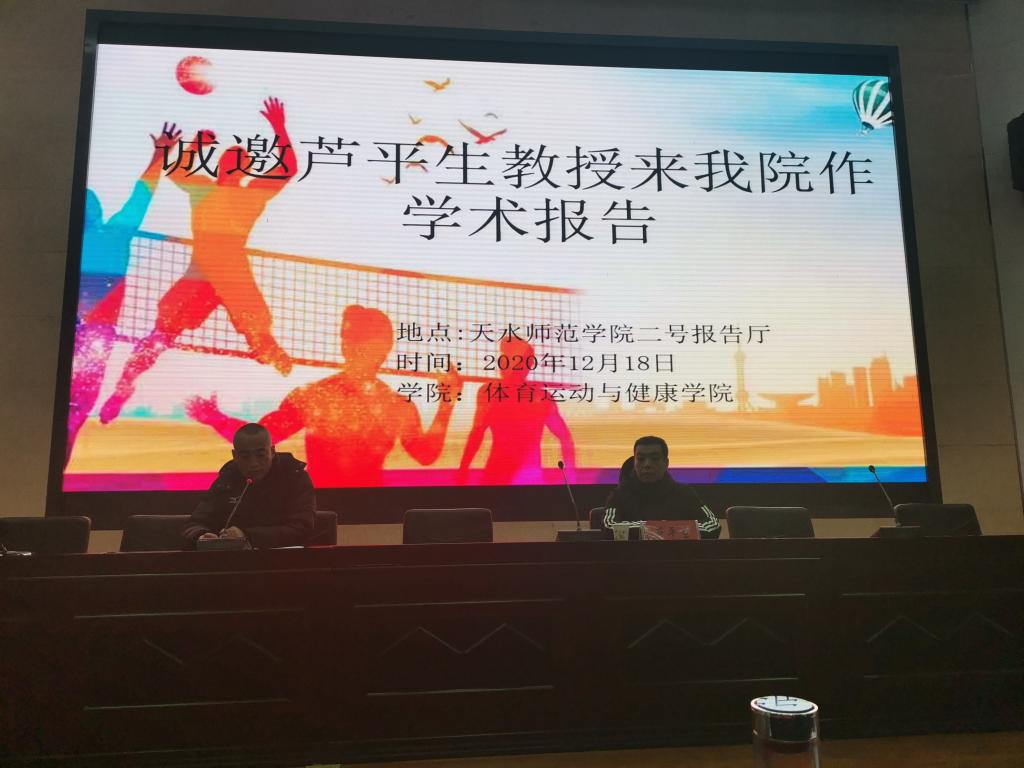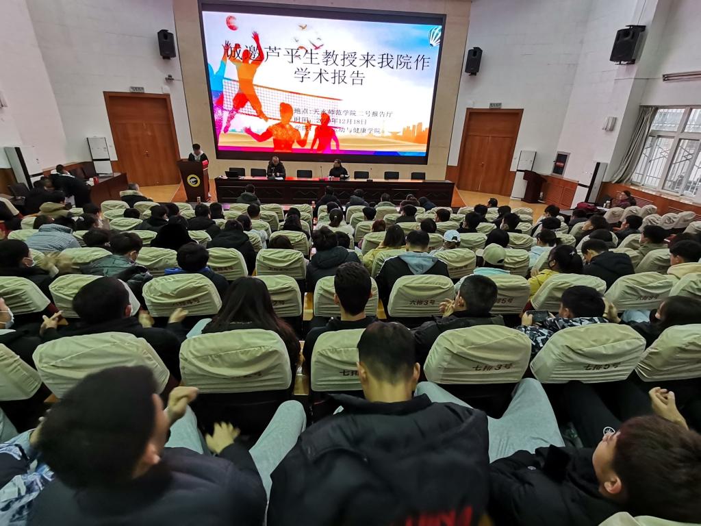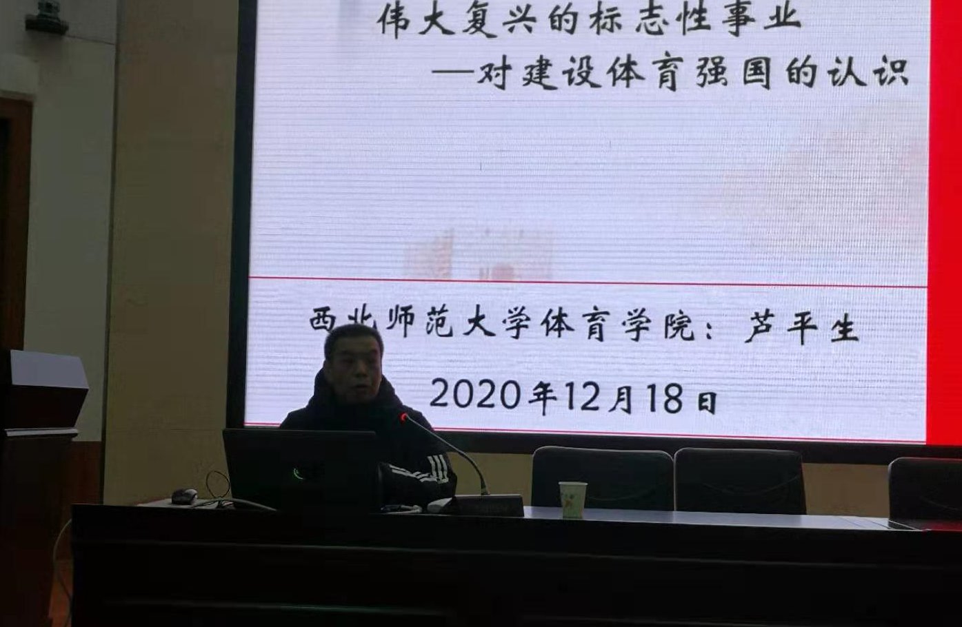 12月18日上午,西北师范大学芦平生教授应应德赢winac米兰邀请,在学校二号报告厅作了题为《奋进新时代——让体育成为中华民族伟大复兴标志性事业》的学术报告。