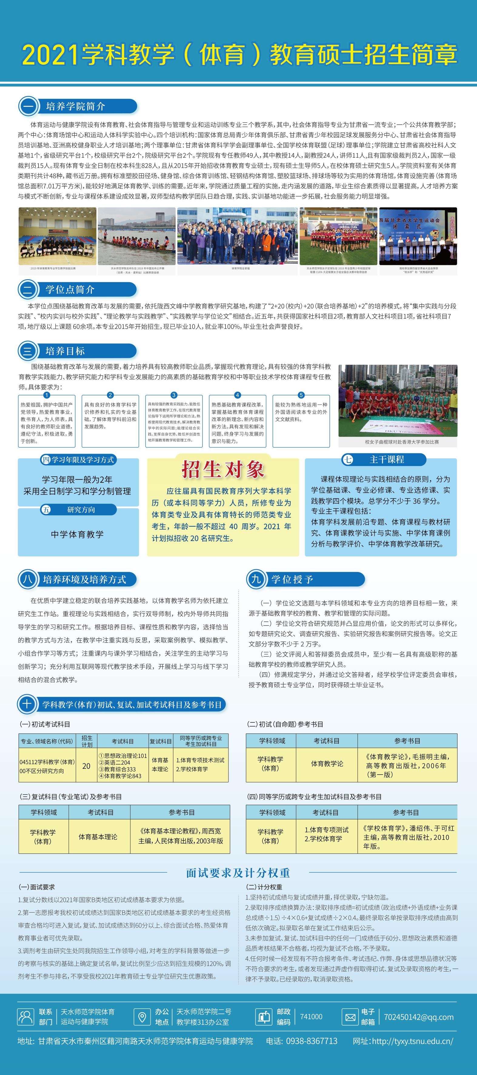 2021学科教学(体育)教育硕士招生简章